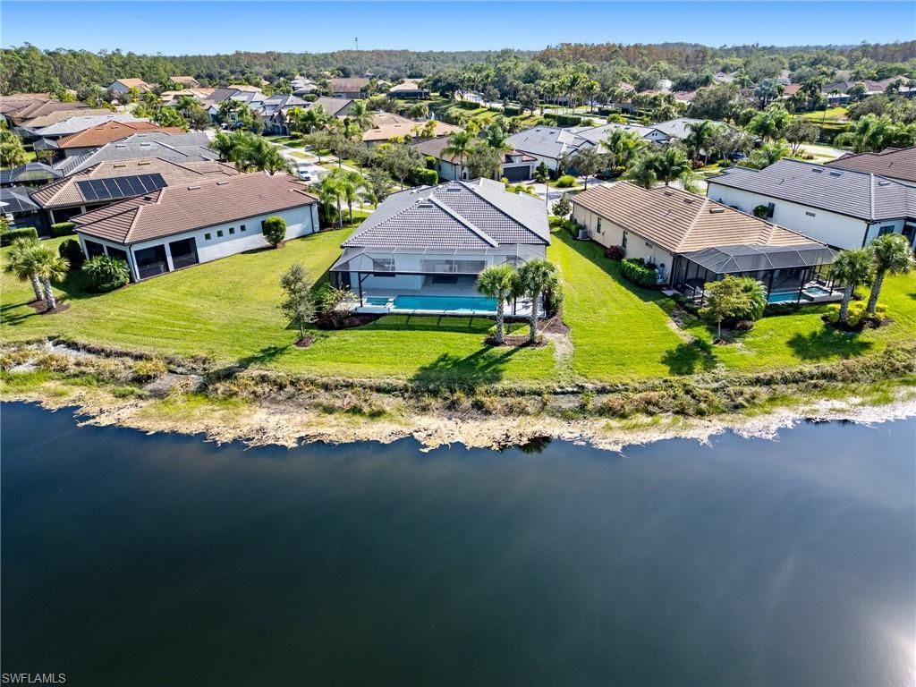 Introducing one of Bridgetown's most coveted waterfront properties - this exceptional lot combines ultimate privacy with breathtaking, long-range water views. Rarely on the market, the Pulte 'Pinnacle Model boasts nearly 2,500 square feet of refined living space, featuring three bedrooms + den, three bathrooms, pool & spa, and a spacious three-car garage. Step inside to be greeted by soaring 14-foot coffered ceilings and a stunning waterfront view! Elegant tile flooring flows throughout the main...Introducing one of Bridgetown's most coveted waterfront properties - this exceptional lot combines ultimate privacy with breathtaking, long-range water views. Rarely on the market, the Pulte 'Pinnacle Model boasts nearly 2,500 square feet of refined living space, featuring three bedrooms + den, three bathrooms, pool & spa, and a spacious three-car garage. Step inside to be greeted by soaring 14-foot coffered ceilings and a stunning waterfront view! Elegant tile flooring flows throughout the main living areas of the home, and plush carpeting are in the bedrooms for added comfort. The gourmet kitchen-truly the heart of the home-invites family gatherings and memorable meals with its large center island, quartz countertops, designer lighting, custom backsplash, and advanced reverse osmosis water treatment system. When its time to retreat for the evening, the split bedroom design ensures privacy for both owners and guests.The expansive primary suite includes a mini-split AC unit for personalized climate control, a generous walk-in closet, dual sinks, and a massive shower for a spa-like experience. Two additional guest bedrooms offer versatile accommodations; one is highlighted by impressive bay windows and plantation shutters, providing natural light and serene views. Outside, enjoy spectacular sunsets from the expansive entertaining areas, where the integrated pool and spa create an ideal backdrop for relaxing or hosting friends. Additional premium features include a large picture screen lanai cage, sea-shell coated outdoor tiles, and an epoxy-coated garage floor for durability and style. This turn-key home is thoughtfully sold furnished, allowing you to move in and immediately enjoy the luxurious waterfront lifestyle this home has to offer. Just minutes from the home by golf cart or car is the stellar amenity center. Tennis, pickleball, bocce ball, fitness classes, gym workouts, lap swimming or simply relaxing by the pool all happen here! You are now HOME!