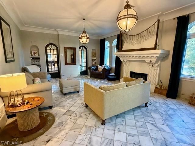 Nestled along the picturesque riverside of McGregor Boulevard, this landmark vintage estate, built in 1925, offers a seamless blend of classic elegance and modern luxury. Situated on nearly half an acre, this timeless home features approximately 4,798sqft of exquisite living space. Spanning 4 bedrooms and 3.5 baths, the main residence includes formal living and dining rooms, an office/den, fitness room, eat-in kitchen with butlers pantry, and an expansive family room. A fully-renovated separate ...Nestled along the picturesque riverside of McGregor Boulevard, this landmark vintage estate, built in 1925, offers a seamless blend of classic elegance and modern luxury. Situated on nearly half an acre, this timeless home features approximately 4,798sqft of exquisite living space. Spanning 4 bedrooms and 3.5 baths, the main residence includes formal living and dining rooms, an office/den, fitness room, eat-in kitchen with butlers pantry, and an expansive family room. A fully-renovated separate guest house offers a living room, dining space, kitchen, bedroom, and full bath ideal for guests or multi-generational living. Elegant period features such as marble and quarter-sawn oak floors, plaster moldings, and a fireplace add timeless character. Enjoy a private courtyard, expansive covered lanai, summer kitchen, saltwater heated pool, spa, and irrigation fed by a well. A rooftop deck offers serene river and tropical breezes views. Circle-drive parking accompanies a spacious garage.