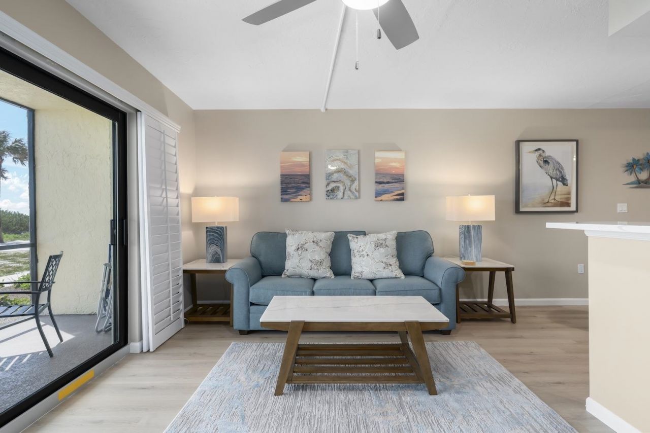 Welcome to Oceans Reach Condominiums on Sanibel Island, offering stunning gulf front living and excellent investment potential! This rare first-floor gulf front condo offers unparalleled direct beach access making it the perfect retreat for full-time residents and vacationers alike. Featuring 1 bedroom and 1 bathroom, this condo boasts luxury vinyl tile throughout, a beautiful updated kitchen with quartz countertops, an open layout, attractive furnishings and accessories, and direct gulf-front v...Welcome to Oceans Reach Condominiums on Sanibel Island, offering stunning gulf front living and excellent investment potential! This rare first-floor gulf front condo offers unparalleled direct beach access making it the perfect retreat for full-time residents and vacationers alike. Featuring 1 bedroom and 1 bathroom, this condo boasts luxury vinyl tile throughout, a beautiful updated kitchen with quartz countertops, an open layout, attractive furnishings and accessories, and direct gulf-front views from the kitchen, great room and large lanai. Hurricane impact sliders and windows throughout. Located just steps from your lanai are the pool and pristine, shell-filled, calm-water beach. Boasting an impeccable location, exceptional gulf front views, onsite rental office, heated pool, tennis court, ample storage, and under building parking, this property has it all! Sanibel Island is world famed as a beautiful conservation island, endowed with miles of unspoiled beaches and excellent sailing waters, world class dining, shopping, championship golf, bird watching, 25 miles of island bike paths, and Ding Darling National Wildlife Refuge making this a prime destination for vacation rentals or seasonal living.