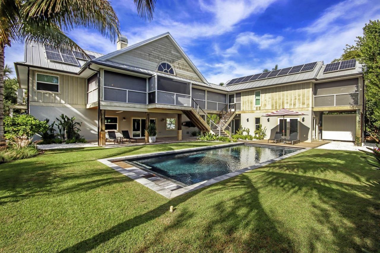 A truly special and unique island jewel, this exceptional East End Sanibel retreat offers a rare blend of refined island living, advanced technology and resort-style amenities. The property features a three-bedroom main residence, graceful indoor/outdoor living under one roof with a separate one-bedroom en-suite guest house, thoughtfully designed for flexibility, comfort, and modern performance.Nestled within a private and intimate tropical setting, the home is surrounded by mature landscaping a...A truly special and unique island jewel, this exceptional East End Sanibel retreat offers a rare blend of refined island living, advanced technology and resort-style amenities. The property features a three-bedroom main residence, graceful indoor/outdoor living under one roof with a separate one-bedroom en-suite guest house, thoughtfully designed for flexibility, comfort, and modern performance.Nestled within a private and intimate tropical setting, the home is surrounded by mature landscaping and curated exterior resort lighting and just steps away from private beach access and the home's own 8,000-lb boat lift with floating kayak platform?creating a seamless connection between land and sea. A private resort lifestyle awaits.The residence is equipped with a hurricane-proven 21.465kW DC solar array and 30kWh battery storage system providing full backup and capable of powering the entire home 24/7. The property is EV-ready, with multiple EV chargers in the garage on dedicated circuits and power in place for dockside EV charging. The garage offers oversized impact-rated doors, impact windows and two four-post vehicle lifts. The guest house includes a dedicated luxury gym and wellness space featuring lifting floors and commercial-grade surfaces.Naturally aged, untreated ipe decking is featured throughout, including the covered porch, stairs, and boat dock. The elegant board-and-batten poly-ash exterior cladding showcases the architecture, complemented by hurricane-provenĀ GulfLok metal roofing system installed in 2020.The custom heated saltwater pool is designed specifically for lap swimming and includes a fully retractable automated cover, offering both safety and insulation benefits. This exceptional property sets a new standard for modern island living?where privacy, sustainability, and luxury converge in perfect harmony.